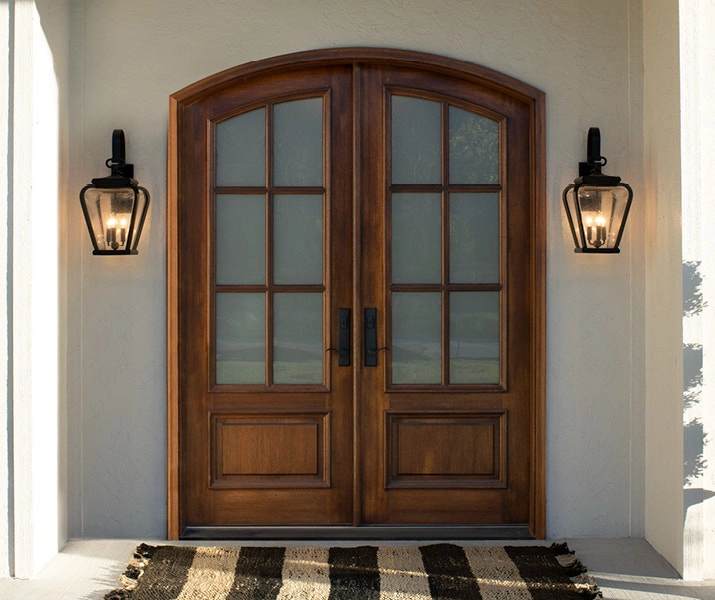 Las puertas de madera con vidrio son fuertes, naturalmente hermosas y dan la bienvenida a más luz en su entrada.